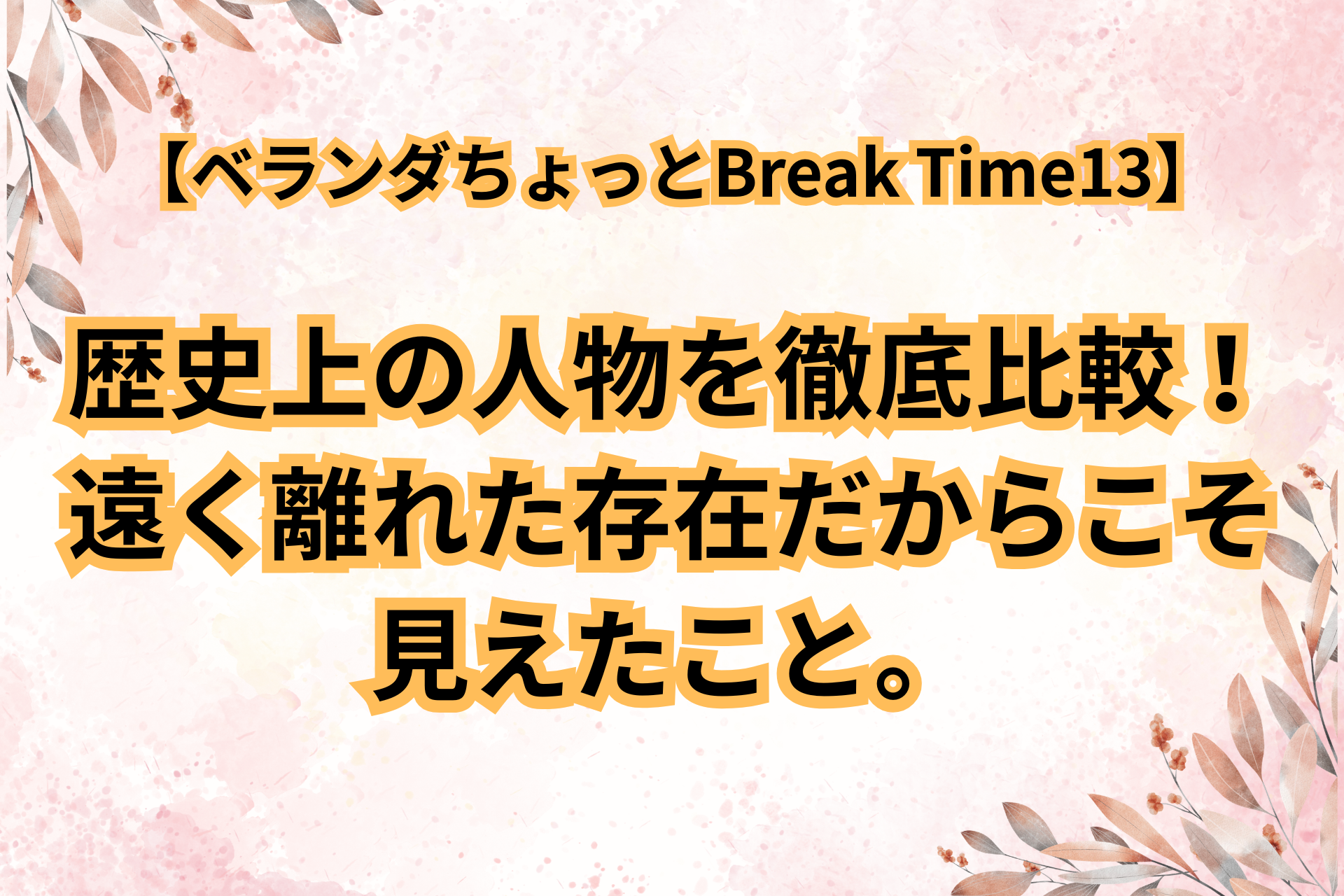 今回は、【ベランダちょっとBreak Time13】歴史上の人物を徹底比較!遠く離れた存在だからこそ見えたこと。と、題してお伝えしました。